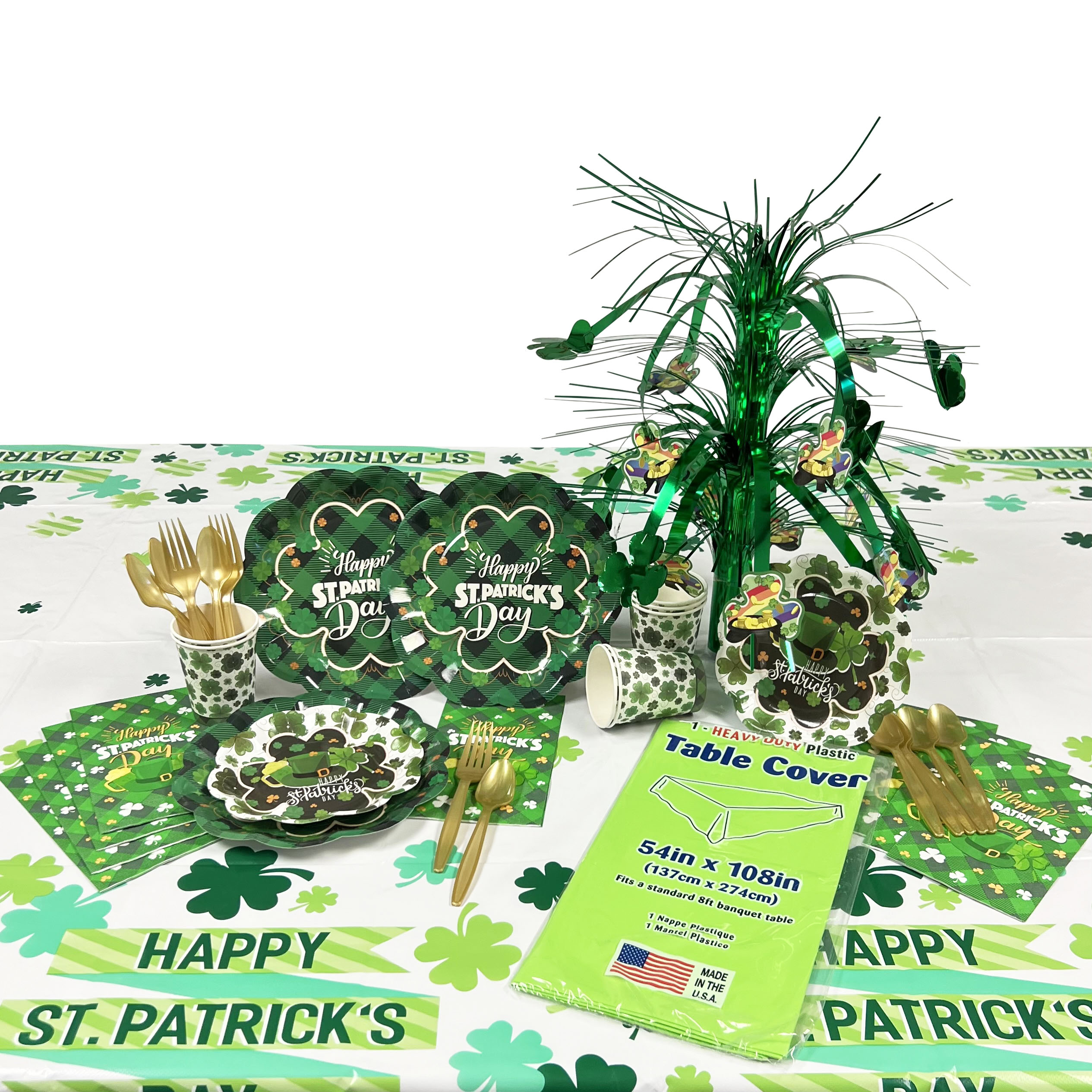 Bring the luck of the Irish straight to your table with this festive St. Patrick’s Day Party Kit from Party Direct! Bursting with classic green hues, playful shamrocks, and cheerful “Happy St. Patrick’s Day” designs, this all-in-one kit makes hosting easy and eye-catching. Perfect for parties, school events, office celebrations, or family gatherings, this kit includes coordinated plates, cups, napkins, cutlery, a table cover, and a dazzling green cascading centerpiece that adds instant wow-factor to your setup. Everything matches beautifully, so your table looks pulled together without the hassle of mixing and matching. Whether you’re hosting a small get-together or a full-on Irish celebration, this Party Direct St. Patrick’s Day Party Kit has everything you need to celebrate in style. Just add friends, food, and a little Irish cheer!